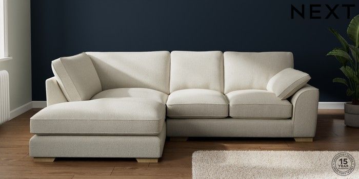 6.12.13 Buy Stamford Grand Relaxed Sit Medium Corner Chaise - Left Hand Chunky Texture Oyster Large Square Angle - Light from the Next UK online shop Click here to use our accessible website