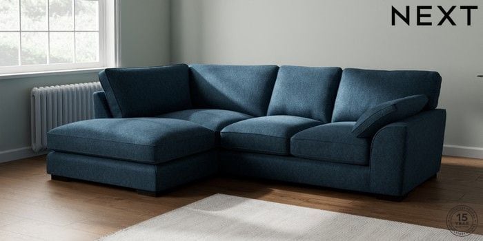 7.2.10 Buy Stamford Grand Relaxed Sit Medium Corner Chaise - Left Hand Cotswold Chenille Dark Blue Large Square Angle - Dark from the Next UK online shop Click here to use our accessible website