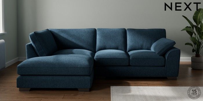 7.3.1 Buy Stamford Grand Relaxed Sit Medium Corner Chaise - Left Hand Cotswold Chenille Dark Blue Large Square Angle - Gunmetal from the Next UK online shop Click here to use our accessible website