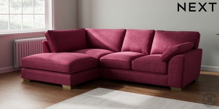 7.2.10 Buy Stamford Grand Relaxed Sit Medium Corner Chaise - Left Hand Cotswold Chenille Dark Raspberry Pink Large Square Angle - Brushed Brass from the Next UK online shop Click here to use our accessible website