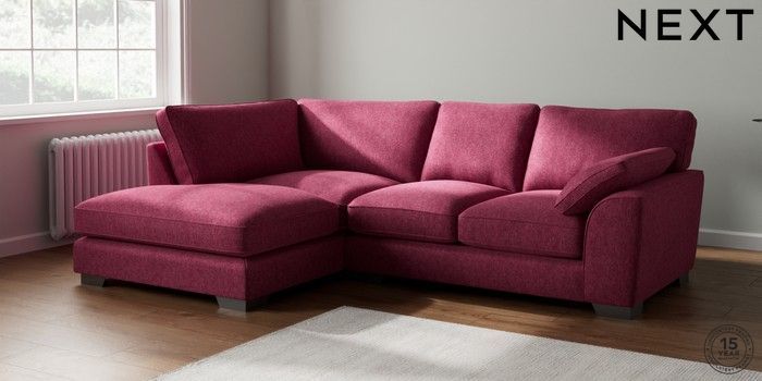 7.3.1 Buy Stamford Grand Relaxed Sit Medium Corner Chaise - Left Hand Cotswold Chenille Dark Raspberry Pink Large Square Angle - Gunmetal from the Next UK online shop Click here to use our accessible website