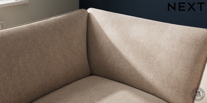 7.3.1 Buy Stamford Grand Relaxed Sit Medium Corner Chaise - Left Hand Cotswold Chenille Light Natural Large Square Angle - Gunmetal from the Next UK online shop Click here to use our accessible website