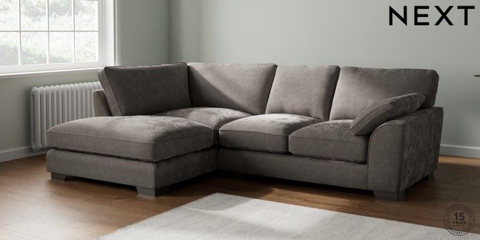7.3.1 Buy Stamford Grand Relaxed Sit Medium Corner Chaise - Left Hand Distressed Velour French Grey Large Square Angle - Gunmetal from the Next UK online shop Click here to use our accessible website