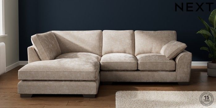 7.3.1 Buy Stamford Grand Relaxed Sit Medium Corner Chaise - Left Hand Distressed Velour Mid Natural Large Square Angle - Gunmetal from the Next UK online shop Click here to use our accessible website