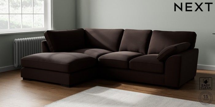 7.2.10 Buy Stamford Grand Relaxed Sit Medium Corner Chaise - Left Hand Fine Chenille Easy Clean Chocolate Brown Large Square Angle - Dark from the Next UK online shop Click here to use our accessible website