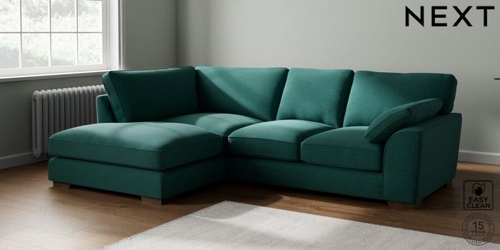 7.2.10 Buy Stamford Grand Relaxed Sit Medium Corner Chaise - Left Hand Fine Chenille Easy Clean Dark Juniper Green Large Square Angle - Mid from the Next UK online shop Click here to use our accessible website