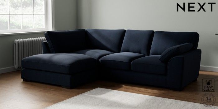 7.2.10 Buy Stamford Grand Relaxed Sit Medium Corner Chaise - Left Hand Fine Chenille Easy Clean Dark Navy Blue Large Square Angle - Dark from the Next UK online shop Click here to use our accessible website