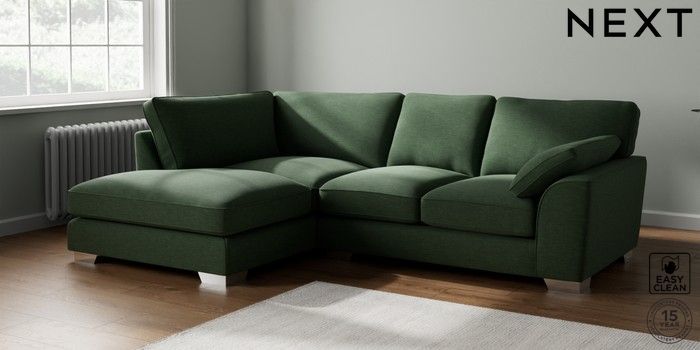 7.3.1 Buy Stamford Grand Relaxed Sit Medium Corner Chaise - Left Hand Fine Chenille Easy Clean Mid Khaki Green Large Square Angle - Chrome Metal from the Next UK online shop Click here to use our accessible website