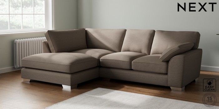7.3.1 Buy Stamford Grand Relaxed Sit Medium Corner Chaise - Left Hand Fine Chenille Easy Clean Mid Taupe Brown Large Square Angle - Chrome Metal from the Next UK online shop Click here to use our accessible website