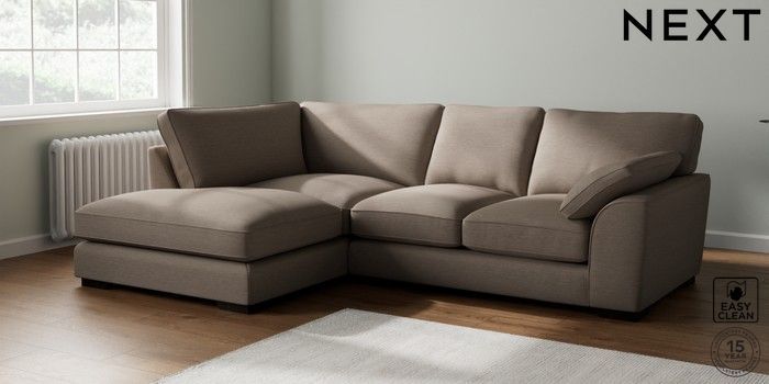7.3.1 Buy Stamford Grand Relaxed Sit Medium Corner Chaise - Left Hand Fine Chenille Easy Clean Mid Taupe Brown Large Square Angle - Dark from the Next UK online shop Click here to use our accessible website