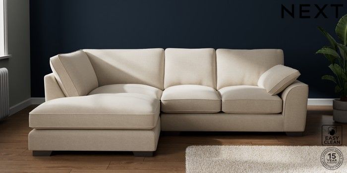 7.3.1 Buy Stamford Grand Relaxed Sit Medium Corner Chaise - Left Hand Fine Chenille Easy Clean Oyster Large Square Angle - Gunmetal from the Next UK online shop Click here to use our accessible website
