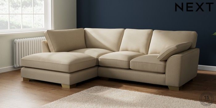 7.3.1 Buy Stamford Grand Relaxed Sit Medium Corner Chaise - Left Hand Natural Mix Light Natural Large Square Angle - Brushed Brass from the Next UK online shop Click here to use our accessible website