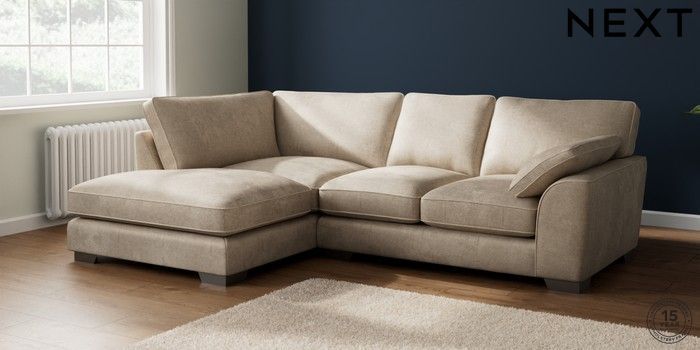 7.3.1 Buy Stamford Grand Relaxed Sit Medium Corner Chaise - Left Hand Plush Chenille Light Natural Large Square Angle - Gunmetal from the Next UK online shop Click here to use our accessible website