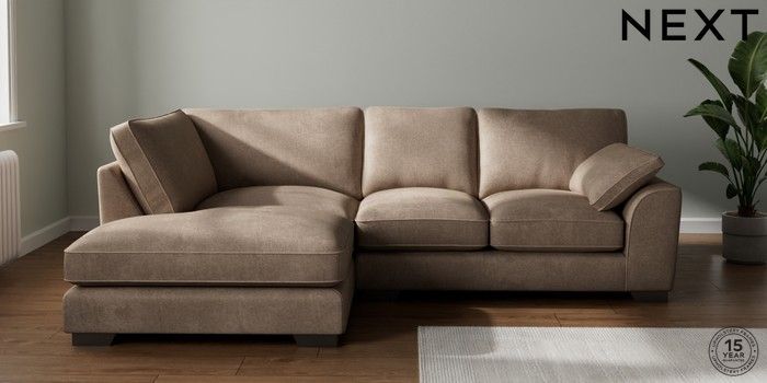 7.3.1 Buy Stamford Grand Relaxed Sit Medium Corner Chaise - Left Hand Plush Chenille Mid Natural Large Square Angle - Gunmetal from the Next UK online shop Click here to use our accessible website