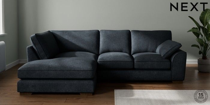 7.3.1 Buy Stamford Grand Relaxed Sit Medium Corner Chaise - Left Hand Plush Chenille Slate Blue Large Square Angle - Mid from the Next UK online shop