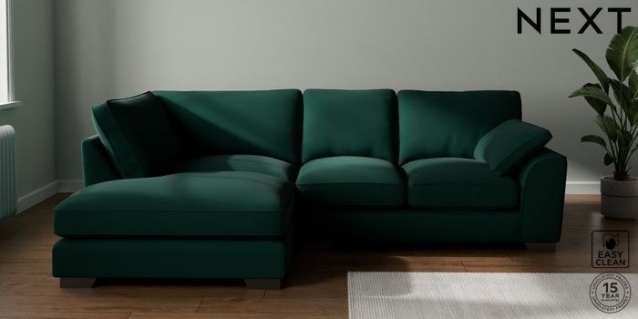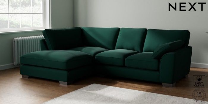 7.3.1 Buy Stamford Grand Relaxed Sit Medium Corner Chaise - Left Hand Plush Velvet Easy Clean Bottle Green Large Square Angle - Gunmetal from the Next UK online shop Click here to use our accessible website