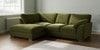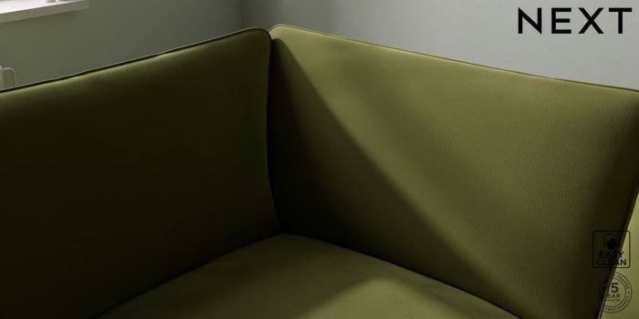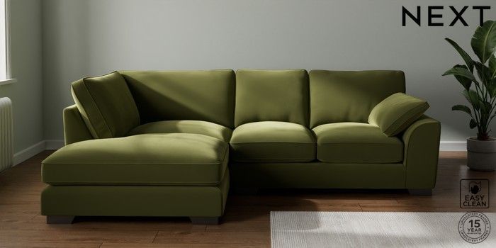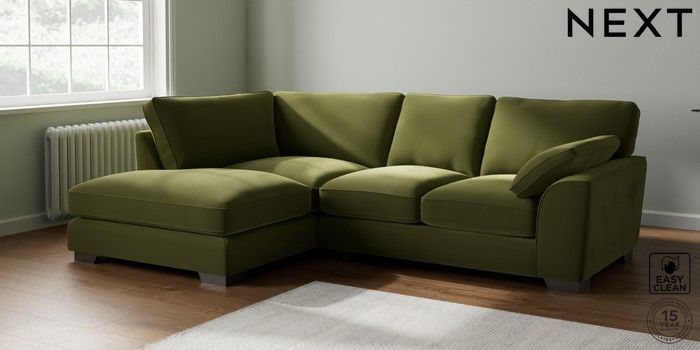 7.3.1 Buy Stamford Grand Relaxed Sit Medium Corner Chaise - Left Hand Plush Velvet Easy Clean Mid Olive Green Large Square Angle - Gunmetal from the Next UK online shop Click here to use our accessible website