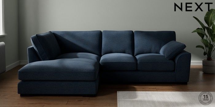 7.0.3 Buy Stamford Grand Relaxed Sit Medium Corner Chaise - Left Hand Ripple Chenille Dark Blue Large Square Angle - Dark from the Next UK online shop Click here to use our accessible website