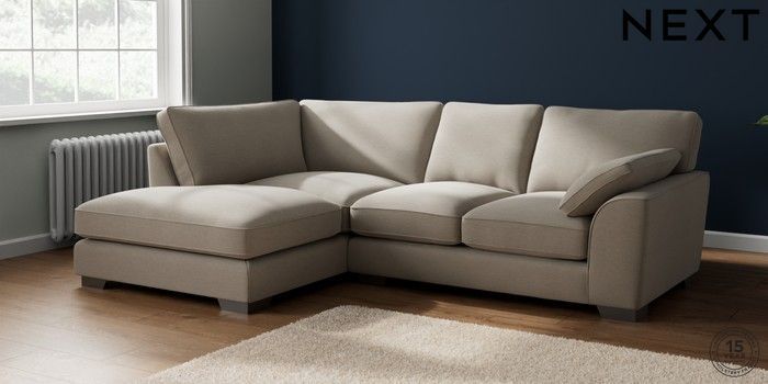 7.3.1 Buy Stamford Grand Relaxed Sit Medium Corner Chaise - Left Hand Ripple Chenille Light Natural Large Square Angle - Gunmetal from the Next UK online shop Click here to use our accessible website