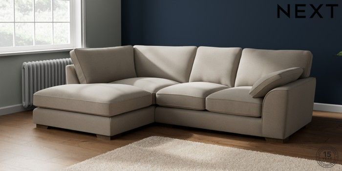 7.2.10 Buy Stamford Grand Relaxed Sit Medium Corner Chaise - Left Hand Ripple Chenille Light Natural Large Square Angle - Mid from the Next UK online shop Click here to use our accessible website