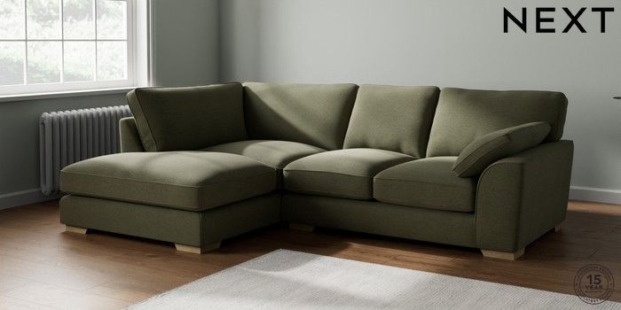 7.2.10 Buy Stamford Grand Relaxed Sit Medium Corner Chaise - Left Hand Ripple Chenille Mid Moss Green Large Square Angle - Light from the Next UK online shop Click here to use our accessible website
