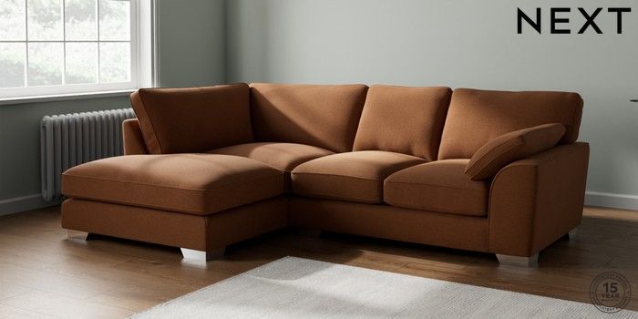 7.2.10 Buy Stamford Grand Relaxed Sit Medium Corner Chaise - Left Hand Ripple Chenille Mid Rust Brown Large Square Angle - Chrome Metal from the Next UK online shop Click here to use our accessible website