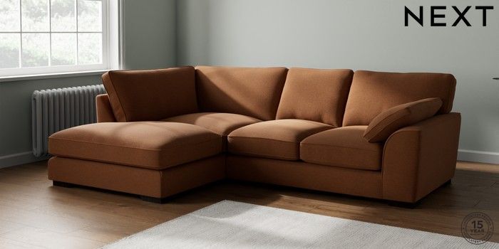 7.2.10 Buy Stamford Grand Relaxed Sit Medium Corner Chaise - Left Hand Ripple Chenille Mid Rust Brown Large Square Angle - Dark from the Next UK online shop Click here to use our accessible website