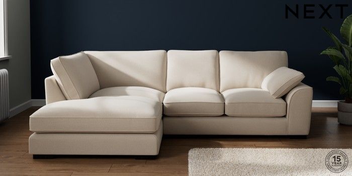 7.3.1 Buy Stamford Grand Relaxed Sit Medium Corner Chaise - Left Hand Studio Chenille Oyster Large Square Angle - Dark from the Next UK online shop