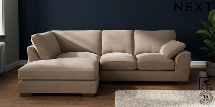 7.3.1 Buy Stamford Grand Relaxed Sit Medium Corner Chaise - Left Hand Tweedy Blend Easy Clean Light Dove Natural Large Square Angle - Gunmetal from the Next UK online shop Click here to use our accessible website