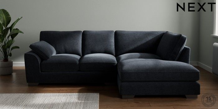 7.3.1 Buy Stamford Grand Relaxed Sit Medium Corner Chaise - Right Hand Boucle Chenille Dark Slate Blue Large Square Angle - Gunmetal from the Next UK online shop Click here to use our accessible website