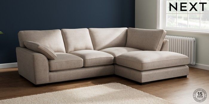 7.2.10 Buy Stamford Grand Relaxed Sit Medium Corner Chaise - Right Hand Boucle Chenille Light Natural Large Square Angle - Dark from the Next UK online shop Click here to use our accessible website