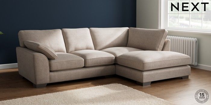 7.3.1 Buy Stamford Grand Relaxed Sit Medium Corner Chaise - Right Hand Boucle Chenille Light Natural Large Square Angle - Gunmetal from the Next UK online shop Click here to use our accessible website