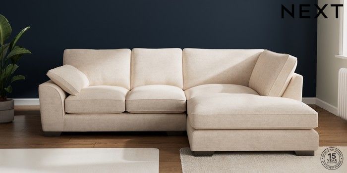 7.3.1 Buy Stamford Grand Relaxed Sit Medium Corner Chaise - Right Hand Boucle Chenille Oyster Large Square Angle - Gunmetal from the Next UK online shop Click here to use our accessible website