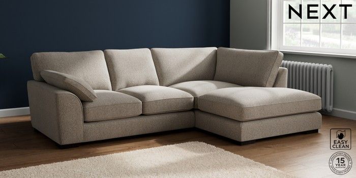 7.3.1 Buy Stamford Grand Relaxed Sit Medium Corner Chaise - Right Hand Chunky Boucle Easy Clean Dove Large Square Angle - Dark from the Next UK online shop Click here to use our accessible website