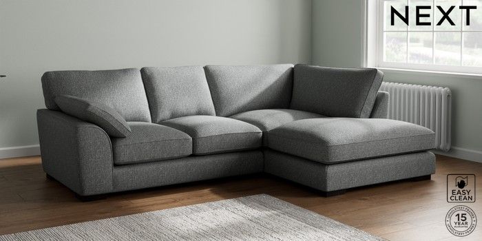7.2.10 Buy Stamford Grand Relaxed Sit Medium Corner Chaise - Right Hand Chunky Boucle Easy Clean Mid Grey Large Square Angle - Dark from the Next UK online shop Click here to use our accessible website