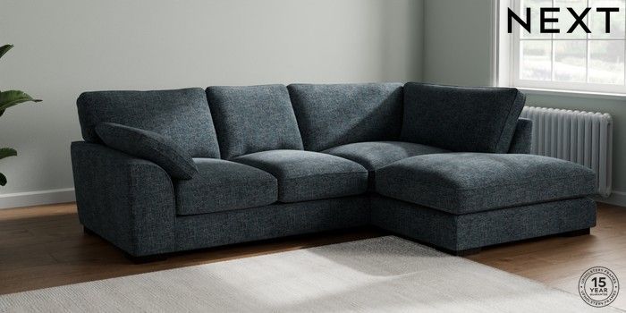 7.2.10 Buy Stamford Grand Relaxed Sit Medium Corner Chaise - Right Hand Chunky Chenille Dark Navy Blue Large Square Angle - Dark from the Next UK online shop Click here to use our accessible website