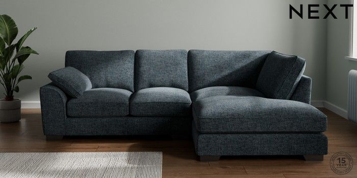 7.3.1 Buy Stamford Grand Relaxed Sit Medium Corner Chaise - Right Hand Chunky Chenille Dark Navy Blue Large Square Angle - Gunmetal from the Next UK online shop Click here to use our accessible website