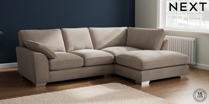 7.3.1 Buy Stamford Grand Relaxed Sit Medium Corner Chaise - Right Hand Chunky Chenille Light Dove Large Square Angle - Chrome Metal from the Next UK online shop Click here to use our accessible website