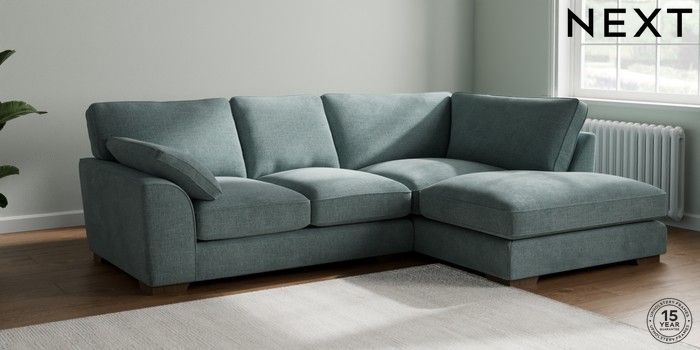 7.2.10 Buy Stamford Grand Relaxed Sit Medium Corner Chaise - Right Hand Chunky Chenille Light Teal Green Large Square Angle - Mid from the Next UK online shop Click here to use our accessible website