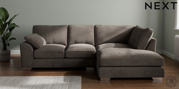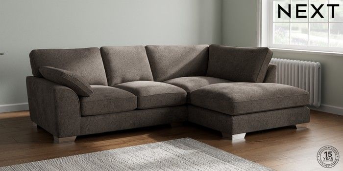 7.3.1 Buy Stamford Grand Relaxed Sit Medium Corner Chaise - Right Hand Chunky Chenille Mink Brown Large Square Angle - Chrome Metal from the Next UK online shop Click here to use our accessible website