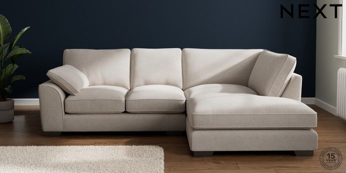7.3.1 Buy Stamford Grand Relaxed Sit Medium Corner Chaise - Right Hand Chunky Chenille Oyster Large Square Angle - Gunmetal from the Next UK online shop Click here to use our accessible website