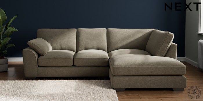7.3.1 Buy Stamford Grand Relaxed Sit Medium Corner Chaise - Right Hand Chunky Marl Light Olive Green Large Square Angle - Gunmetal from the Next UK online shop Click here to use our accessible website