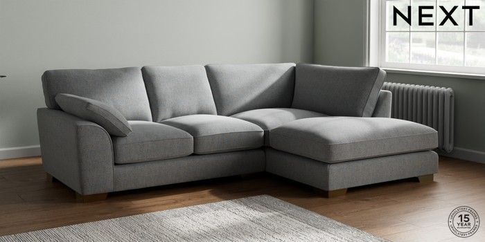 7.2.10 Buy Stamford Grand Relaxed Sit Medium Corner Chaise - Right Hand Chunky Marl Mid Grey Large Square Angle - Brushed Brass from the Next UK online shop Click here to use our accessible website