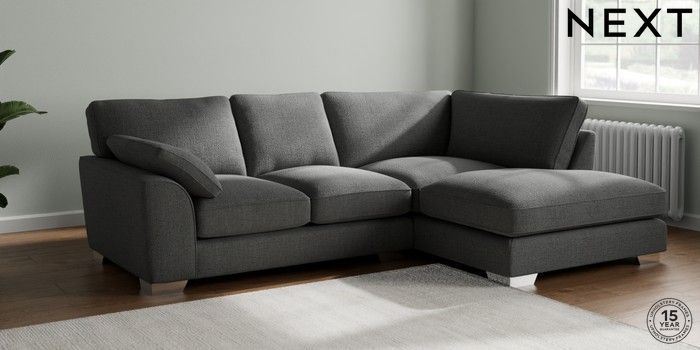7.2.10 Buy Stamford Grand Relaxed Sit Medium Corner Chaise - Right Hand Chunky Texture Dark Grey Large Square Angle - Chrome Metal from the Next UK online shop Click here to use our accessible website