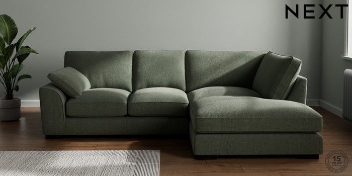 7.3.1 Buy Stamford Grand Relaxed Sit Medium Corner Chaise - Right Hand Chunky Texture Mid Forest Green Large Square Angle - Dark from the Next UK online shop