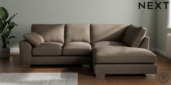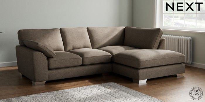 7.3.1 Buy Stamford Grand Relaxed Sit Medium Corner Chaise - Right Hand Chunky Weave Dark Natural Large Square Angle - Chrome Metal from the Next UK online shop Click here to use our accessible website