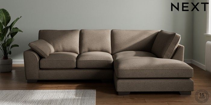 7.3.1 Buy Stamford Grand Relaxed Sit Medium Corner Chaise - Right Hand Chunky Weave Dark Natural Large Square Angle - Gunmetal from the Next UK online shop Click here to use our accessible website