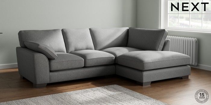 7.3.1 Buy Stamford Grand Relaxed Sit Medium Corner Chaise - Right Hand Chunky Weave Mid Grey Large Square Angle - Gunmetal from the Next UK online shop Click here to use our accessible website
