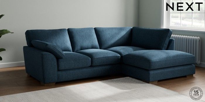 7.2.10 Buy Stamford Grand Relaxed Sit Medium Corner Chaise - Right Hand Cotswold Chenille Dark Blue Large Square Angle - Mid from the Next UK online shop Click here to use our accessible website