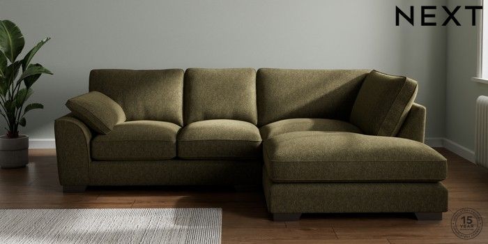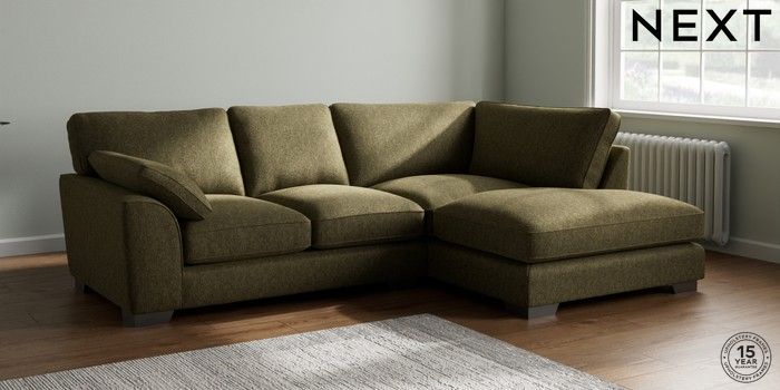 7.3.1 Buy Stamford Grand Relaxed Sit Medium Corner Chaise - Right Hand Cotswold Chenille Dark Green Large Square Angle - Gunmetal from the Next UK online shop Click here to use our accessible website